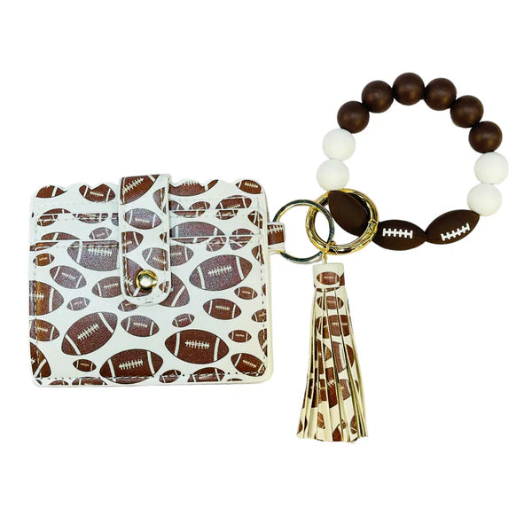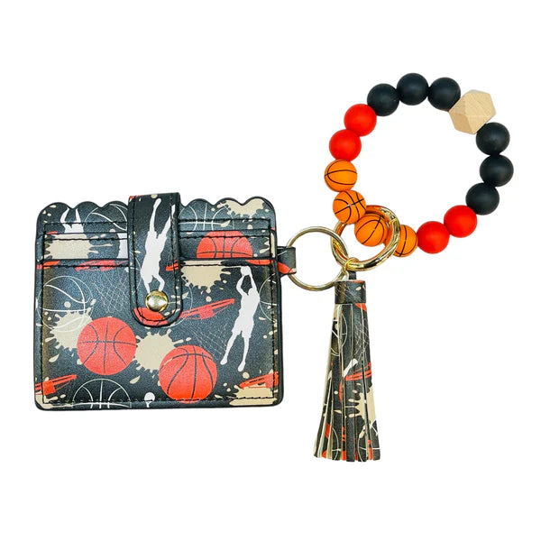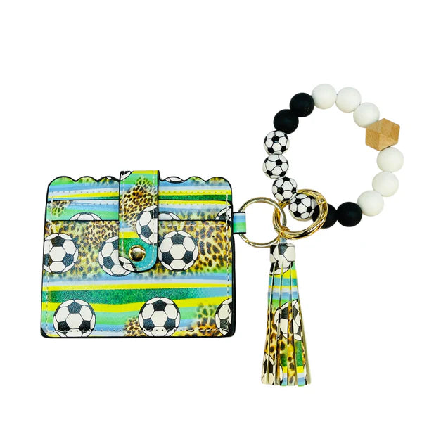- With silicone beaded key ring bracelet- Vegan leather card holder- 3 card slots