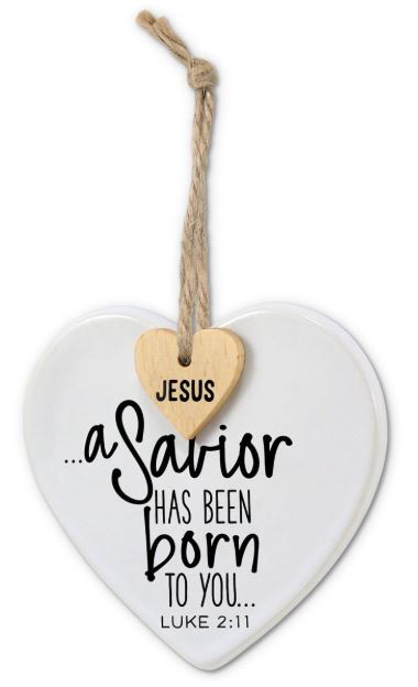 Two unique hearts make up this charming ornament. The larger white ceramic heart with a smaller wooden heart charm doubly proclaim the title and Scripture. Comes in a gift box. This gift makes a difference. Through partnership with the nonprofit, A Better Life For Kids, orphans and children with special needs are given healthy meals, clean water, safe housing, and education opportunities in Ghana, Africa. Material: ceramic, MDF, twine.
