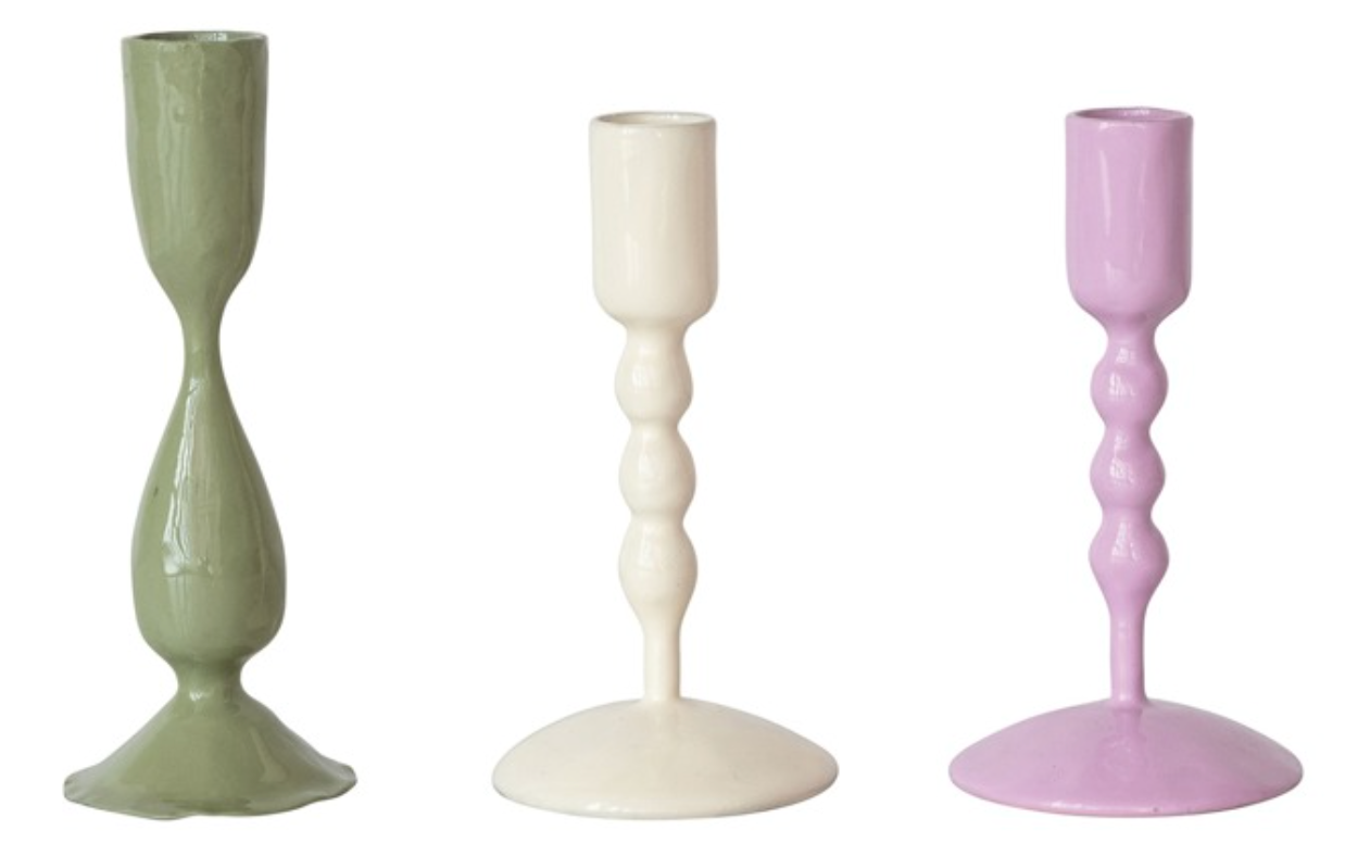 These enameled metal taper holders are the perfect addition to any home decor, adding a touch of elegance and sophistication. With their sleek design and durable construction, they are not only stylish but also functional. Measuring 2-3/4" in diameter and 5-1/2" in height, they are the perfect size for displaying taper candles and creating a warm and inviting atmosphere in any room. Whether you're hosting a dinner party or simply want to add a cozy touch to your living space, these holders are a must-have accessory. Choose from 3 different styles to suit your personal taste and elevate your home decor.