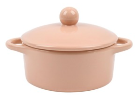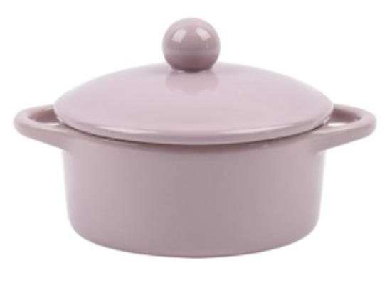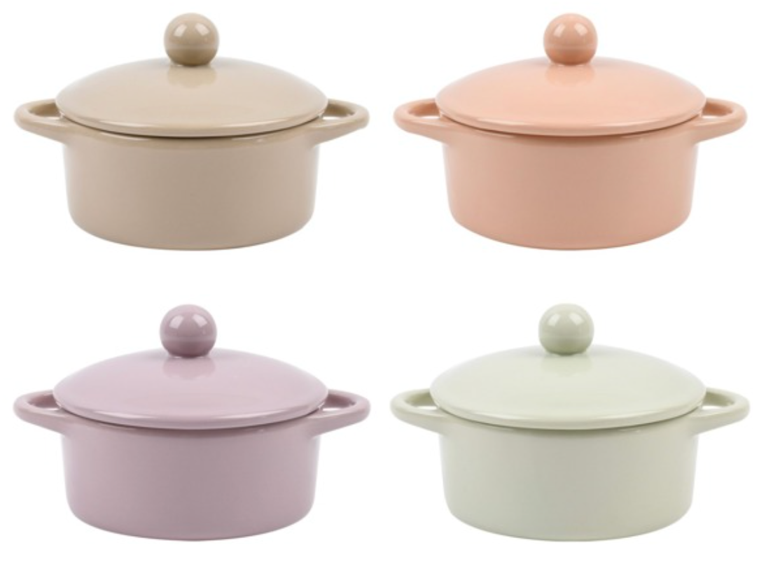 5" Round x 4"H 1 Cup Stoneware Mini Baker w/ Ball Handle & Lid, 4 Colors, Hand Wash Only, Do Not Microwave