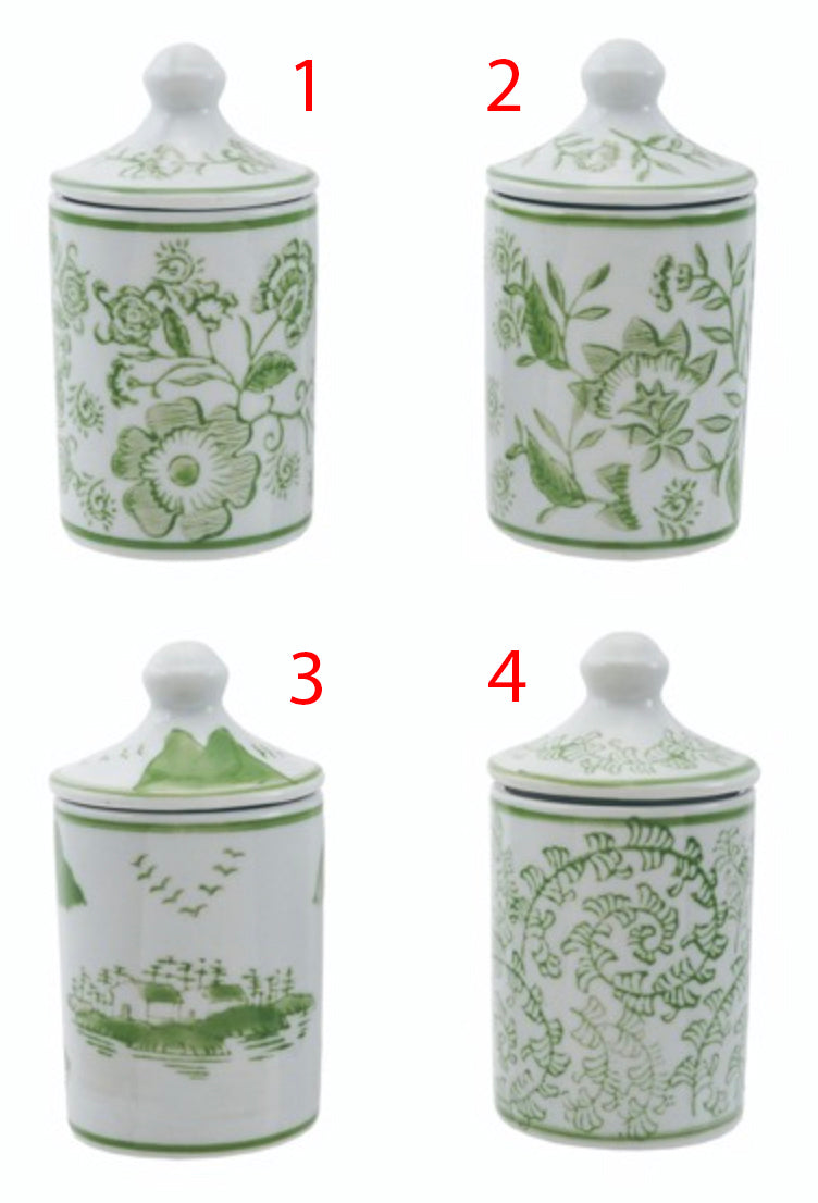 Hazel Mazel HM0444Ax Hand-Stamped Green Stoneware Spice Jar w/Pattern - 4 Styles