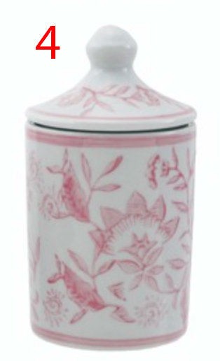 Hazel Mazel HM0445Ax Hand-Stamped Pink Stoneware Spice Jar w/Pattern - 4 Styles