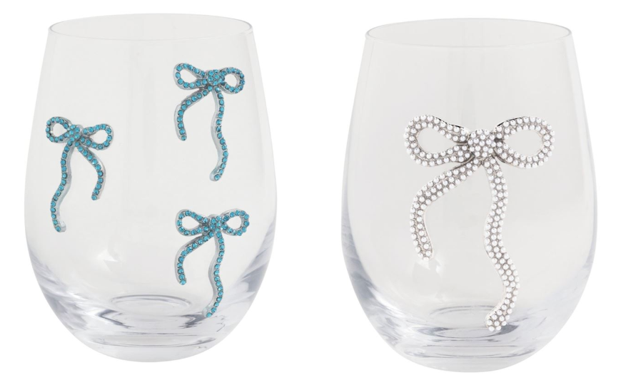 Mud Pie 26 44600138x Bow Beaded Wine Glasses - 2 Styles