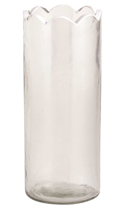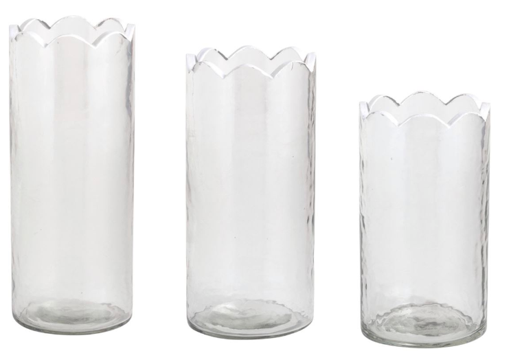 Glass bud vase features hand-painted scallop edge.Dim: small 5 1/2" x 3" dia | Medium 6 1/2" x 3" dia | large 7 1/2" x 3" dia