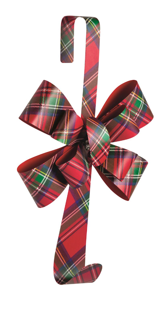 Corrugate tin Santa wreath hanger with LED lights. Santa Requires 2 AAA batteries, not included.