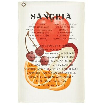 Absorbent cotton hand towel features printed watercolor fruit artwork, coordinating drink recipe and corner grommet. DETAILS Size: 26" x 16 1/2"