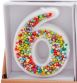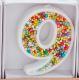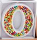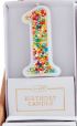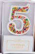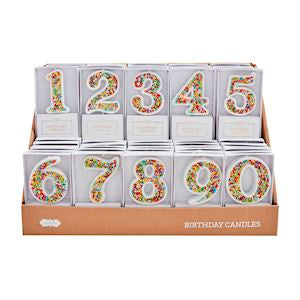 Sprinkled wax number candle on plastic stake.