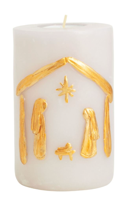 Hand-painted resin pillar holds standard tea light. Place and replace for limitless hours of candle enjoyment. Comes with standard tea light.
