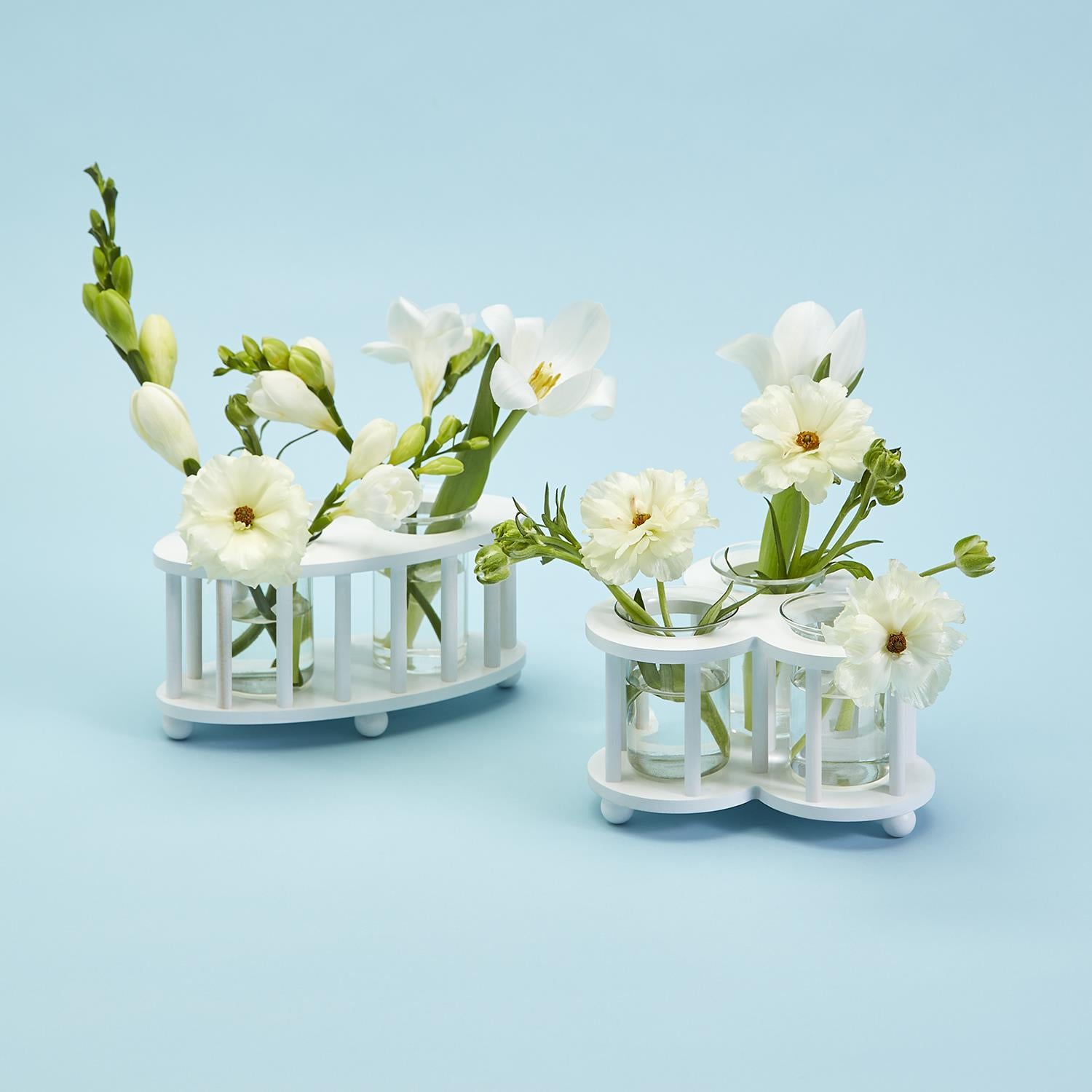 Designed and sold by Two's Company almost 25 years ago but we felt that it was time to come back. The colonnade series offers a wonderful way to create memorable arrangements. The smaller hand blown glass vials make owner arranging super easy. They are the perfect vases to use when you are picking up wild flowers from your garden.