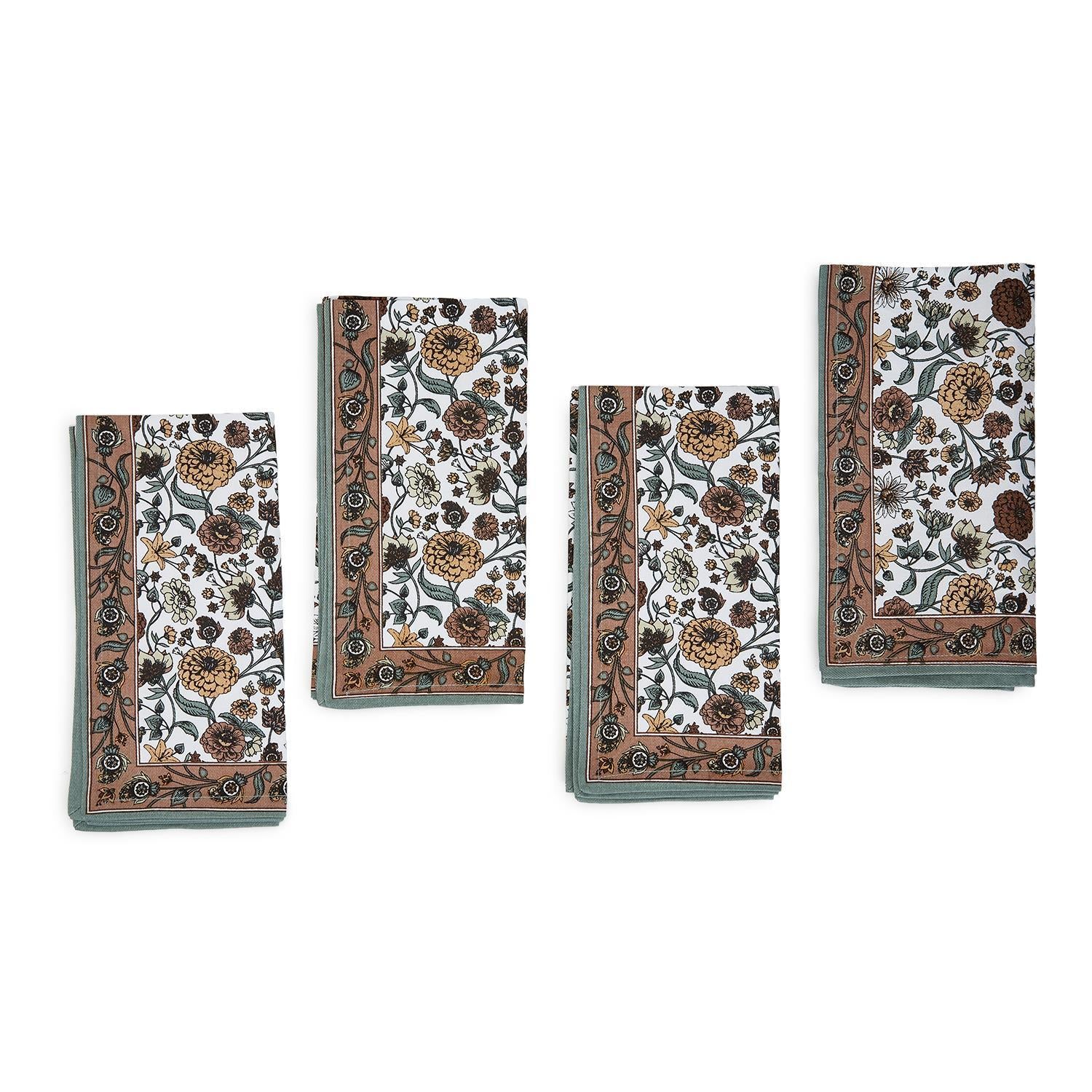 Beautiful Fall Floral Cloth Napkins trimmed in Sea Foam Green