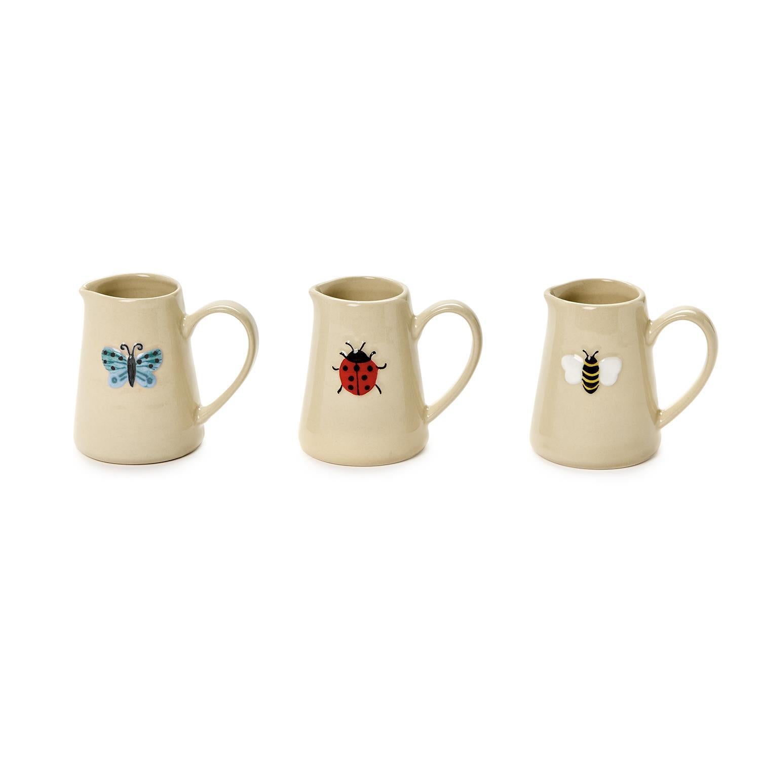 **EACH SOLD SEPARATELY**Transform your dining table into a whimsical garden oasis with these adorable mini pitchers. Each piece features hand-painted accents in three spring-themed designs: a buzzy bee, a delicate butterfly, and a vibrant ladybug. Each holding 4oz. of your favorite beverage, these pitchers are not only a visual delight but also dishwasher safe for easy cleaning.