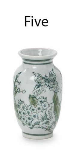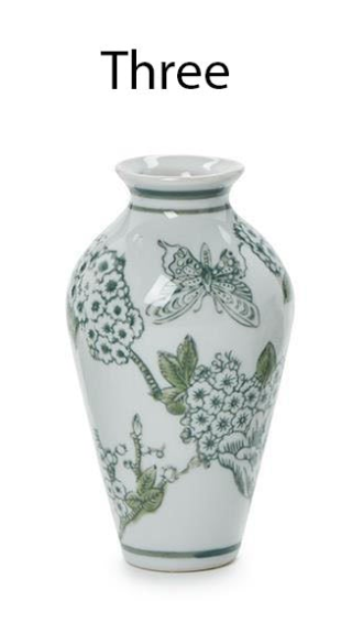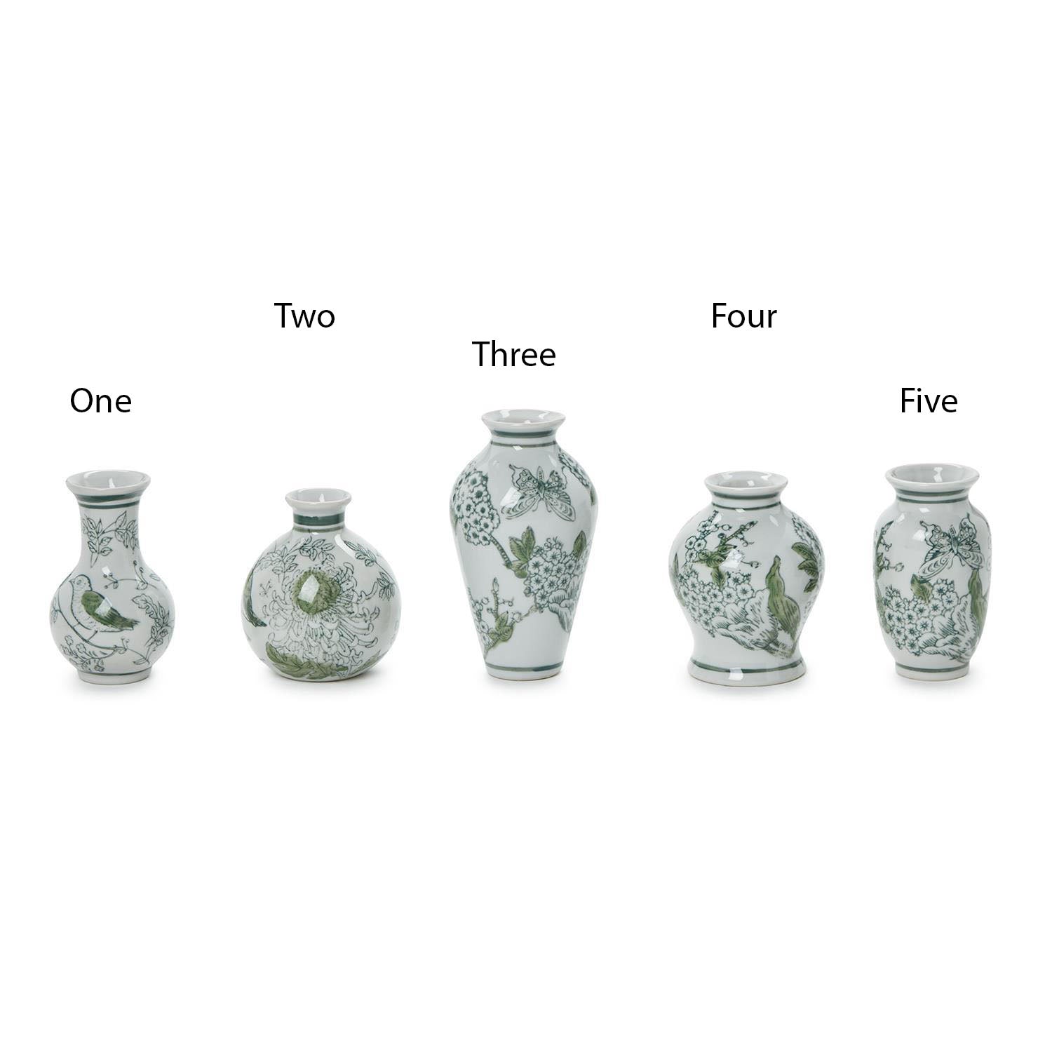 **EACH SOLD SEPARATELY**The Lotus Set of 5 Hand-Painted Mini Vases are in exquisite green and white chinoiserie. These vases are crafted from fine porcelain, ensuring both beauty and durability. Each set includes five unique shapes, adding a touch of individuality to your dècor. The hand-painted finish brings an artisanal touch to each piece, making them a stunning addition to any home. Whether displayed together or separately, these vases bring a touch of elegance to your living space.
